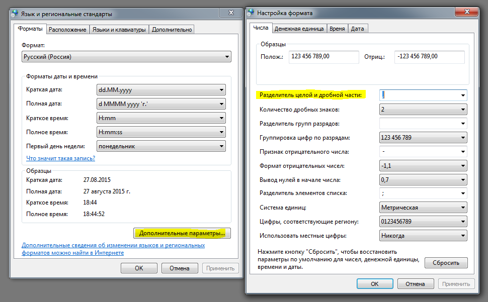 Разделитель в числе запятую вместо точки