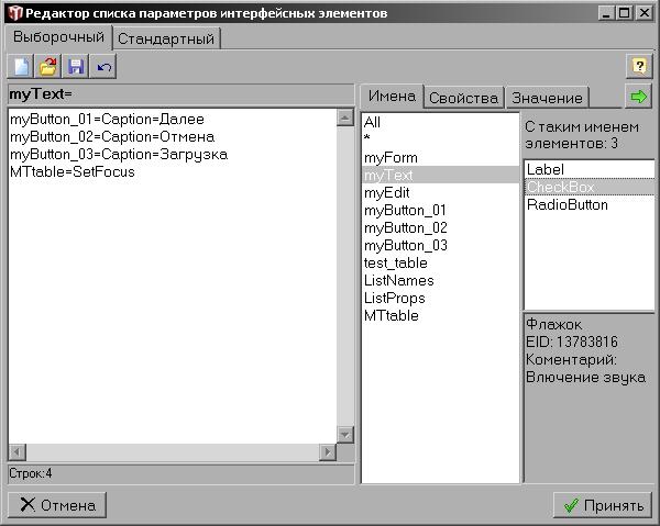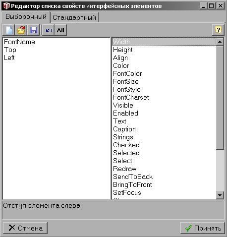 Изменение свойств интерфейса