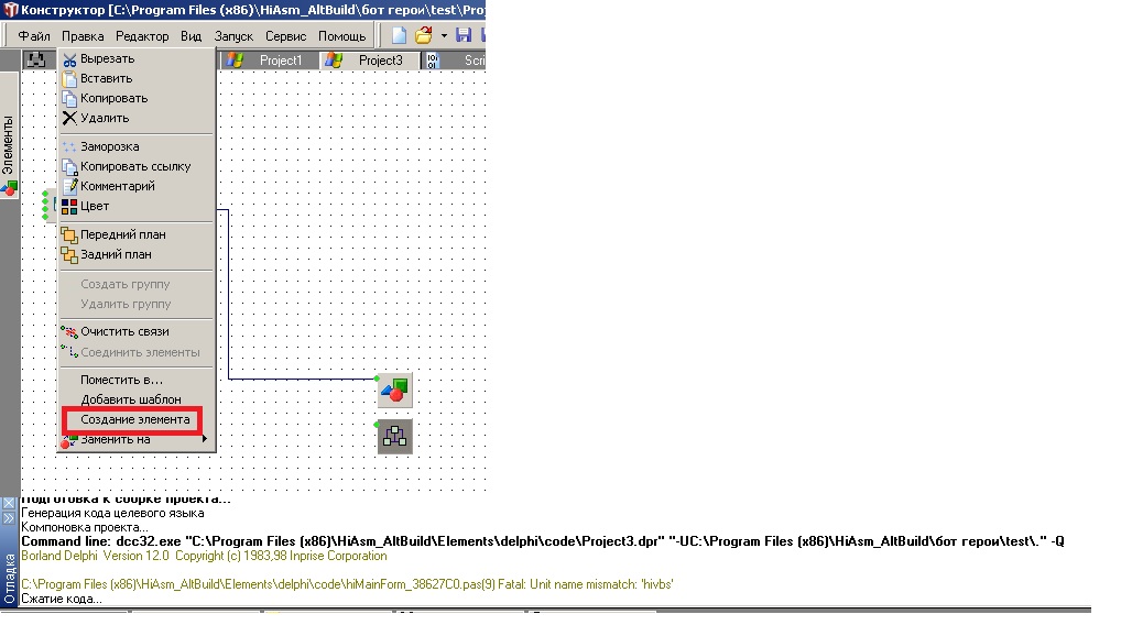 Создания элементов