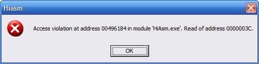После отмены ошибки отображается Project1 c MainForms, но не отображаются панели инструментов. При попытке закрыть, выдает вот такую ошибку Ошибка повторяется до тех пор, пока я не создам новый проект Project2, после чего выходит нормально, но ошибка при запуске повторяется ------------ Дoбавленo: Интерсесно, что переслав новый Hiasm.exe в старую версию, ошибок не выдает. Запустить я его запущу, но вот что народ подумает? |