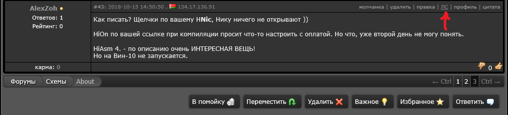 AlexZoh писал(а): Как писать?Попробуйте зайти в HiOn через Mozila FF, Opera, Chrome или Edge. IE точно не поддерживается. Залогиньтесь - линк в правом верхнем углу. Теперь может подписаться на тестовый бесплатный тариф. Устанавливайте HiAsm 4 в папку C:\HiAsm. Только заранее её создайте и пропишите в исключения своего антивируса, если это системный защитник, то и в его исключения тоже. В официальном дистрибутиве с этого сайта вирусов нет, но есть якобы вредоносное ПО. Поэтому, чтобы нормально запустить процесс установки, надо скачивать его также в папку, которая прописана в исключения у антивируса и/или системного защитника. Редактировалось 2 раз(а), последний 2018-10-15 15:42:36 |
