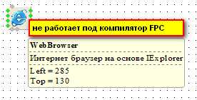............. {$Else} _Debug('Не работает под FPC. Установите компилятор Delphi.'); ........ ------------ Дoбавленo: извини не увидел и не проверил. Сейчас проверил. Отлично. +1 ------------ Дoбавленo: Хотя и то, что предложил Вячеслав, можно реализовать простым исправлением в ini хинта к компоненту |