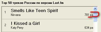 Простая схема, отображающая 50 самых прослушиваемых в России композиций..