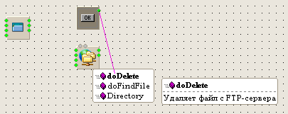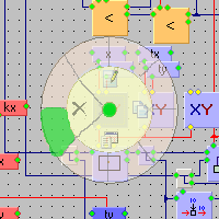 так на рисунке выше изображена менюшка, которая появляется при наведении на элемент и удержании на нем некоторое время курсора мыши во время стандартной операции прокладки связи. В меню первыми двумя пунктами идут имена скрытых Work точек элемента и последним пунктом имя свойства, для которого можно создать Work точку. При отпускании связи над одним из этих пунктов среда автоматически создаст точку и соединит ее с ранее выбранной. Если скрытая точка уже есть у элемента и она с чем-то соеденена, то в меню она отображена не будет.