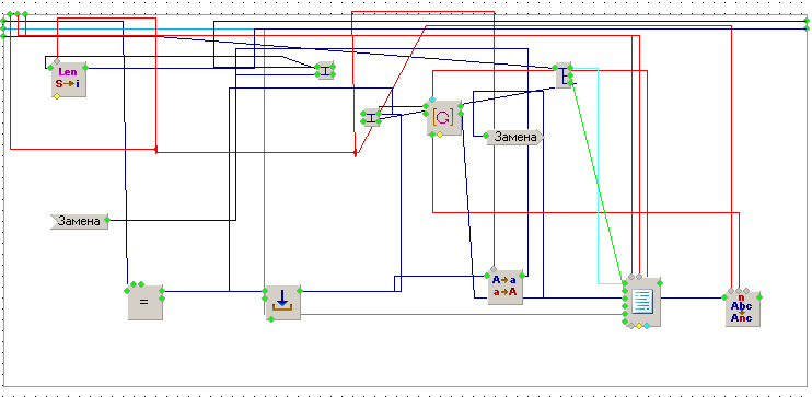вот вторая схема - она такая же, но с глюком Add(Memo,48585,126,168) { Top=105 Width=392 Height=161 Align=5 Point(onMouseDown) Point(Position) Point(onKeyDown) Point(doSetSelStart) Point(SelText) link(onMouseDown,14427489:doEvent,[]) link(onKeyDown,8336593:doCompare,[(181,188)(181,412)]) } Add(MainForm,11978161,343,329) { link(onCreate,11132116:doFileExists,[]) } Add(PopupMenuEx,16634778,238,189) { Menu=#3:Мат| Bitmaps=[] PictureLeft=[ZIP3604000078DA73F235636100033320D600620128666450804840E591C1FFFFFFF16262D4E0D34BAC3DB8F4EFDFBF9F68FD0C1F90D8AF50ED6778895D1D363318EE01F129A8FE0F50FA2454FC030137DC05E2FD40BC004D3F887F0062064EBD403782ED41D22BFFE22B83FE93F708334EFD47F10B8AFE8740BC0B556FFCF5FB0C8DE72E33C4DFB80F11DF055187E1E70F50B76F41E83700DADB74FE0A380E4034186C4184037A58A0DB2F07B51FA4370166FF4E4CFB51E2EC14AAFFE55E7E6530784C9CFFB1863F0C2C848ADF239C86C0669C84FA650B943E4538FE31D2DF43A89E07103E31E90F9F9964E52102FA01E5934A83] link(MenuItemIdx,10042479:doLength,[]) } Add(If_else,8336593,189,406) { Op2=Integer(32) link(onTrue,16012110:doEvent1,[]) link(onFalse,15654102:doNext,[(231,419)(231,447)]) } Add(Copy,3214584,280,406) { link(onCopy,13125225:doValue,[]) link(Str,2284626:Var2,[]) link(Position,923570:Result,[]) link(Count,15654102:Count,[(300,394)(330,394)(330,483)(286,483)]) } Add(Counter,15654102,280,441) { } Add(Hub,16012110,238,406) { OutCount=3 link(onEvent1,3214584:doCopy,[]) link(onEvent2,923570:doOperation,[(268,419)(268,335)]) link(onEvent3,15654102:doReset,[(266,426)(266,461)]) } Add(Math,923570,287,329) { Op2=2 link(Op1,48585:Position,[(293,317)(153,317)]) } Add(Replace,189249,749,406) { DestStr="<censored>" link(onReplace,4032654:doEvent1,[(788,412)(788,488)(65,488)(65,398)]) link(Str,2284626:Var3,[(755,376)]) link(Sub_str,2385482:Var3,[(762,383)]) } Add(StrList,16700579,574,301) { Strings=#5:бляд*|5:пизд*|3:хуй| Point(doSort) link(Str,370868:Var3,[(580,159)]) link(FileName,2398251:Var3,[(587,285)]) } Add(ArrayEnum,22166,588,406) { link(onItem,14101644:doEvent1,[]) link(Array,16700579:Array,[]) } Add(Memory,13125225,448,406) { link(onData,22166:doEnum,[]) } Add(GetDataEx,2284626,280,371) { Angle=3 link(Data,6301504:Var3,[]) } Add(Hub,4032654,77,392) { link(onEvent1,48585:doText,[(105,398)(105,195)]) link(onEvent2,1948176:doLength,[]) } Add(Length,1948176,126,399) { link(onLength,48585:doSetSelStart,[(170,405)(170,324)(114,324)(114,216)]) link(Str,6301504:Var2,[]) } Add(GetDataEx,6301504,126,371) { link(Data,48585:Text,[]) } Add(IndexToChanel,14427489,189,175) { link(onEvent1,8531336:doWork1,[(543,181)]) link(onEvent2,16634778:doPopupHere,[(229,188)(229,195)]) } Add(DoData,6437131,371,189) { link(onEventData,1545770:doString,[]) link(Data,370868:Var2,[]) } Add(Length,10042479,280,189) { link(onLength,5620424:doCompare,[]) link(Str,16465273:Var2,[]) } Add(If_else,5620424,322,189) { Type=5 link(onTrue,6437131:doData,[]) } Add(GetDataEx,16465273,280,154) { Angle=3 link(Data,48585:SelText,[(202,159)(202,238)(160,238)]) } Add(Message,9353653,455,189) { Caption="Обновление базы" Type=1 Icon=2 Point(onOK) link(onOK,4568963:doEvent1,[(499,202)(499,307)]) } Add(GetDataEx,370868,371,154) { Angle=3 link(Data,16465273:Var3,[]) } Add(StrMask,7353300,686,399) { Point(doMask) link(onTrue,189249:doReplace,[]) link(Str,2385482:Var2,[]) } Add(Hub,14101644,644,406) { link(onEvent1,7353300:doMask,[]) link(onEvent2,7353300:doCompare,[(672,419)(672,405)]) } Add(GetDataEx,2385482,686,378) { Angle=3 link(Data,13125225:Value,[(491,383)(491,450)(454,450)]) } Add(FileTools,11132116,392,322) { link(onEnd,12995938:doEvent,[]) link(FileName,2398251:Var2,[]) } Add(IndexToChanel,12995938,448,322) { link(onEvent2,16700579:doLoad,[]) } Add(Memory,8401402,392,238) { Default=String(censored.lst) } Add(GetDataEx,2398251,392,280) { link(Data,8401402:Value,[]) } Add(FormatStr,1545770,413,189) { DataCount=1 Mask="Добавить в базу слово %1?" link(onFString,9353653:doMessage,[]) } Add(IndexToChanel,7715874,329,91) { link(onEvent2,6425935:doWork2,[]) } Add(ChildForm,6749316,441,91) { } BEGIN_SDK Add(EditMulti,14578348,21,21) { WorkCount=1 Width=412 link(doWork1,6370274:doVisible,[(49,27)(49,139)]) } Add(MainForm,6370274,70,105) { Left=35 Top=105 Width=348 Height=230 Visible=1 BorderStyle=3 Point(doVisible) link(onCreate,2599745:doLoad,[]) } Add(ListBox,2599745,287,91) { Left=10 Top=10 Width=160 Height=175 Sort=0 Point(Index) link(Str,1800767:Text,[(293,68)(195,68)]) link(FileName,8401402:Value,[]) } Add(Button,11422800,224,154) { Left=180 Top=15 Width=150 Caption="Удалить выделенное" link(onClick,8049669:doData,[]) } Add(Edit,1800767,189,28) { Left=180 Top=65 Width=150 Text="" } Add(Button,13507359,226,91) { Left=180 Top=90 Width=150 Caption="Добавить в базу" link(onClick,2599745:doAdd,[]) } Add(Memory,8401402,294,28) { Default=String(censored.lst) } Add(DoData,8049669,308,154) { link(onEventData,2599745:doDelete,[(359,160)(359,81)(275,81)(275,111)]) link(Data,2599745:Index,[]) } Add(Button,13777628,119,133) { Left=180 Top=165 Width=150 Caption="Сохранить изменения" link(onClick,8340616:doEvent1,[]) } Add(Hub,8340616,175,133) { link(onEvent1,2599745:doSave,[(238,139)(238,132)]) link(onEvent2,6370274:doClose,[(199,146)(199,176)(58,176)(58,132)]) } END_SDK Add(ChanelToIndex,6425935,378,91) { link(onIndex,6749316:doWork1,[]) } Add(Hub,4568963,511,301) { OutCount=3 link(onEvent1,16700579:doAdd,[]) link(onEvent2,16700579:doSort,[(535,314)(535,349)]) link(onEvent3,8531336:doWork2,[]) } Add(HubEx,8531336,539,315) { link(onEvent,16700579:doSave,[(549,321)(549,342)]) } Add(MenuEx,6402039,280,91) { Menu=#18:Редактировать базу| Bitmaps=['Bitmap'=[]] link(MenuItemIdx,7715874:doEvent,[]) }