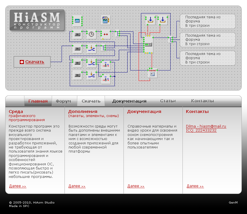 если что, могу заняться таковым. люблю дизайн ------------ Дoбавленo в 21.29: вот, за час реализовал все: И вот собс-но сам исходник (добавить файлы не получилось): http://paulipete.narod.ru/files/hiasm_index.zip (в исходнике почти не убирал старые слои, только скрыл) |