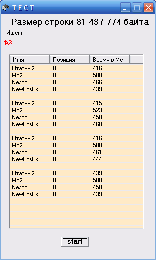 Но и так ясно, что поиск SubStr разной длины при применении NewPosEx занимает почти одно и тоже время (разница мизер ), чего не скажешь о других методах.