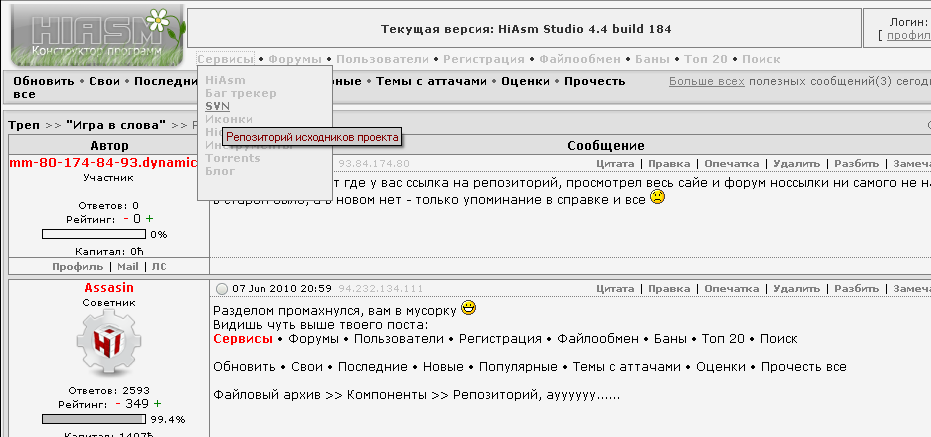 Видишь чуть выше твоего поста: Сервисы • Форумы • Пользователи • Регистрация • Файлообмен • Баны • Топ 20 • Поиск Обновить • Свои • Последние • Новые • Популярные • Темы с аттачами • Оценки • Прочесть все Файловый архив >> Компоненты >> Репозиторий, ауууууу...... |