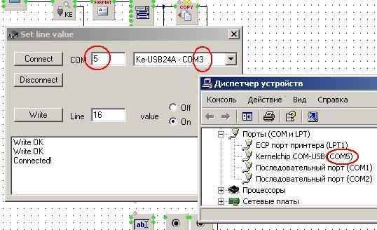 указваю линию и галочку ON пишет ОК но диод не горит в чем косяк понять не могу, на родной проге от CernelChip все работает.
