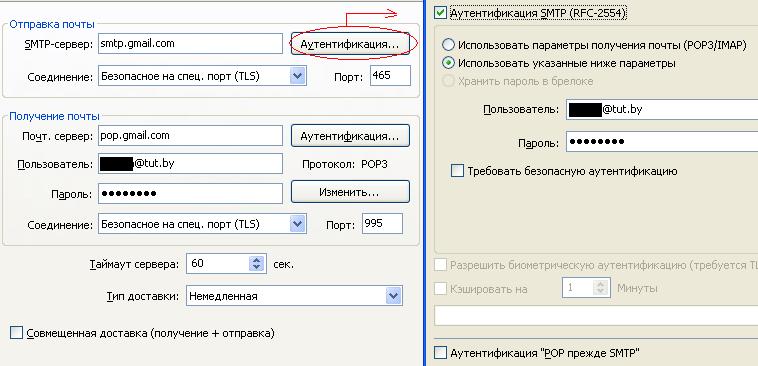 Узнавайте настройки вашего почтового провайдера. |
