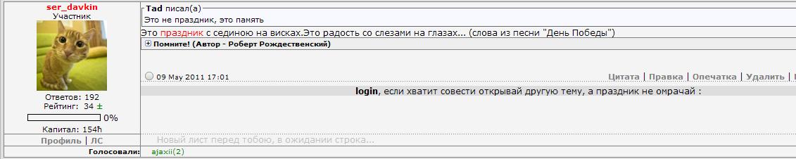 login, если хватит совести открывай другую тему, а праздник не омрачай