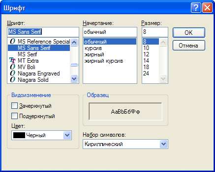 Nic писал(а): Попытайтесь обосновать необходимость реализации такого свойства, и кто знает...Такое свойство позволяет вызвать стандартное окно выбора шрифта и еще есть весь список установленных шрифтов + образец отображения |