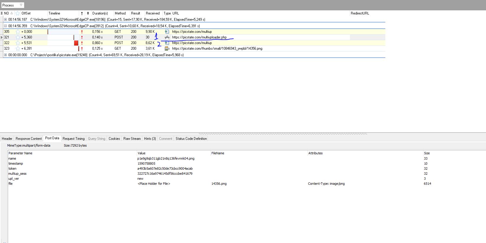Сначала попробовать один запрос - тот, который на картинке отправляет файл. Если будут проблемы - нужен второй запрос, так как он выполняется к другой странице.