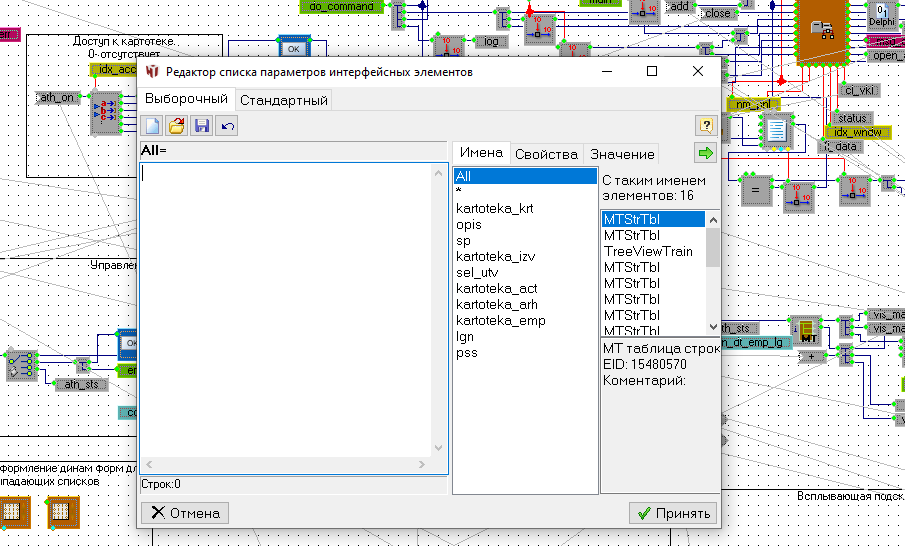 Нужно протестировать: ParametersList.sha Отличительная особенность этой версии в том что после редактирования свойства (выходе из редактора) должно быть снято выделение со всех элементов. Теперь заработал список виз.элементов. А вот ошибка с комментариями осталась. 1. выбрать компонент 2. в панели свойств справа нажать на кнопочку '...' У меня ошибка появляется на первых двух кнопочках '...' Редактировалось 3 раз(а), последний 2025-01-16 09:36:58 |