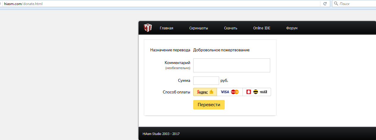 Попробуйте эту ссылку http://hiasm.com/donate.html