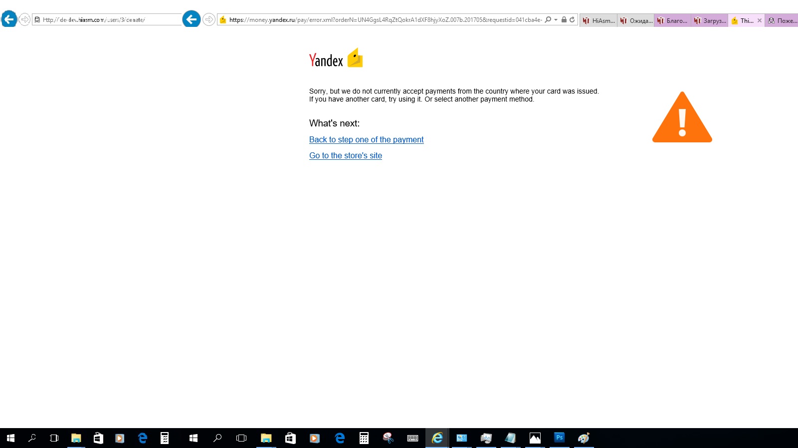 Sorry, but we do not currently accept payments from the country where your card was issued.
