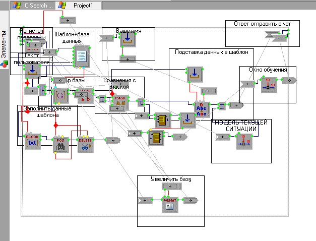 Add(MainForm,2953706,49,70) { Width=431 Height=329 Caption="Умный бот (0.0.5)" Position=1 link(onDeactivate,14365186:In,[]) link(onCreate,4771312:In,[]) } Add(Edit,8670163,203,84) { Width=415 Align=2 Text="" link(onEnter,2078886:doEvent1,[]) } Add(Memo,14659374,497,84) { Top=20 Width=415 Height=271 Align=5 Point(EndIdx) } Add(Hub,2078886,301,91) { OutCount=4 link(onEvent1,425789:doEvent1,[(381,97)(381,90)]) link(onEvent2,1070188:In,[]) link(onEvent3,15287741:In,[]) link(onEvent4,11069576:In,[]) } Add(MultiElement,4465529,357,175) { link(onEvent1,425789:doEvent2,[(397,181)(397,97)]) link(onEvent2,5198890:In,[]) link(Data1,290693:Var,[]) } BEGIN_SDK Add(EditMulti,1061766,14,28) { EventCount=2 WorkCount=5 DataCount=1 Width=531 Height=445 link(doWork1,16561956:In,[]) link(doWork2,4726208:In,[]) link(doWork3,7875121:In,[]) link(doWork4,5867775:In,[]) link(doWork5,4689441:In,[]) } Add(StrList,7590074,217,98) { FileName="Бот.txt" Strings=#29:привет=Привет, как дела $имя!|34:хорошо=Я, очень за тебя рад, $имя!| } Add(Replace,5125365,427,231) { SubStr="$имя" link(onReplace,537481:doEvent1,[]) link(Str,6494692:Value,[(433,212)(419,212)]) link(Dest,13323879:Var,[]) } Add(Memory,2056730,301,98) { Default=String(Незнакомец) } Add(ArrayEnum,10160767,77,273) { link(onItem,11174774:doSplit,[(135,279)(135,265)]) link(onEndEnum,16510060:In,[(114,286)(114,293)]) link(Array,13254377:Var,[(83,259)(111,259)]) } Add(StrCase,1980422,105,49) { link(onModify,12485196:In,[]) } Add(Memory,13976054,77,112) { link(onData,3607854:In,[]) } Add(StrPart,11174774,147,259) { Char="=" DirectEvent=0 link(onSplit,7249463:In,[(187,265)(187,258)]) link(onPart,5320958:In,[]) } Add(StrMask,15231518,266,217) { Point(doMask) link(onTrue,15968388:doEvent1,[]) link(Str,4323014:Var3,[(272,215)]) } Add(LineBreak,13275744,77,161) { Type=1 link(Data,7866856:Var2,[]) Primary=[11441942,189,28] } Add(Hub,13221857,238,217) { link(onEvent1,15231518:doMask,[(259,223)(259,230)]) link(onEvent2,15231518:doCompare,[(259,230)(259,223)]) } Add(Memory,6494692,413,161) { } Add(LineBreak,3984905,301,147) { Type=1 link(Data,2056730:Value,[]) Primary=[13323879,140,56] } Add(LineBreak,13400443,497,28) { link(Out,1061766:onEvent1,[]) Primary=[12842497,0,203] } Add(GetDataEx,7866856,77,147) { link(Data,13976054:Value,[]) } Add(InfoTip,3165757,70,21) { Info=#18:Регистру переводим| Width=99 Height=60 } Add(InfoTip,11222914,168,70) { Info=#18:Шаблон+база данных| Width=92 Height=88 } Add(InfoTip,16629815,42,210) { Info=#12:Перебор базы| Width=169 Height=102 } Add(InfoTip,595701,217,182) { Info=#18:Сравнения с маской| Width=148 Height=102 } Add(InfoTip,15906990,378,126) { Info=#25:Подставка данных в шаблон| Width=169 Height=144 } Add(InfoTip,12074308,266,91) { Info=#8:Ваше имя| Width=106 Height=67 } Add(InfoTip,7416486,427,14) { Info=#21:Ответ отправить в чат| Width=148 Height=53 } Add(LineBreak,16246888,259,105) { link(Out,2056730:doValue,[(295,111)(295,104)]) Primary=[714054,-14,308] } Add(Position,3516802,140,413) { Target="т" ShortSearch=1 link(onSearch,13507382:doDelete,[]) link(Str,9755323:Var2,[]) } Add(Hub,12154121,49,259) { OutCount=3 link(onEvent1,9273955:In,[(67,265)(67,230)]) link(onEvent2,14808974:In,[(70,272)(70,251)]) link(onEvent3,10160767:doEnum,[]) } Add(Delete,13507382,189,413) { link(onDelete,714054:In,[]) link(Str,9755323:Var3,[(195,390)]) link(Count,3516802:Position,[(209,401)(177,401)(177,457)(146,457)]) } Add(GetDataEx,9755323,140,385) { link(Data,7096826:Var3,[(146,363)]) } Add(GetDataEx,7096826,84,358) { Angle=3 link(Data,14181386:Var,[(81,363)(81,353)(90,353)]) } Add(BlockFind,14337777,84,406) { StartBlock="меня" EndBlock=" зовут " link(onSearch,3516802:doSearch,[(128,412)(128,419)]) link(Text,7096826:Var1,[(90,382)(78,382)(78,352)(90,352)]) } Add(FormatStr,7079420,455,406) { Mask="%1=%2" link(onFString,13325983:In,[]) link(Str1,1640201:Var,[]) link(Str2,8611511:Var,[]) } Add(GetDataEx,4323014,259,210) { link(Data,11441942:Var,[(265,203)]) } Add(DoData,11437723,329,315) { Data=Integer(1) link(onEventData,16613748:In,[]) } Add(LineBreak,7557005,406,406) { link(Out,7079420:doString,[]) Primary=[5867775,-371,-357] } Add(LineBreak,6001114,168,105) { link(Out,7590074:doAdd,[(204,111)(204,104)]) Primary=[13325983,329,301] } Add(LineBreak,4548159,98,0) { Type=1 link(Data,1061766:Data1,[(104,-12)(66,-12)(66,33)(20,33)]) Primary=[8611511,364,378] } Add(LineBreak,7260335,259,238) { Type=1 link(Data,4323014:Var2,[]) Primary=[1640201,196,140] } Add(LineBreak,176928,287,322) { link(Out,11437723:doData,[(323,328)(323,321)]) Primary=[13667194,224,14] } Add(LineBreak,16404138,504,49) { link(Out,1061766:onEvent2,[(540,55)(540,41)]) Primary=[16613748,-133,266] } Add(InfoTip,8434756,287,294) { Info=#13:Окно обучения| Width=113 Height=74 } Add(InfoTip,2339548,406,364) { Info=#14:Увеличить базу| Width=134 Height=102 } Add(Hub,15968388,315,224) { link(onEvent1,9476941:In,[]) link(onEvent2,2300959:In,[]) } Add(ChanelToIndex,11718092,434,280) { link(onIndex,15342785:doValue,[]) } Add(LineBreak,10210560,392,280) { link(Out,11718092:doWork1,[]) Primary=[14808974,-315,-35] } Add(Memory,15342785,483,280) { } Add(IndexToChanel,9053461,462,329) { Point(Index) link(onEvent1,13667194:In,[(502,335)(502,342)]) link(Index,15342785:Value,[(468,313)(489,313)]) } Add(LineBreak,72675,420,329) { link(Out,9053461:doEvent,[]) Primary=[16510060,-301,-42] } Add(DoData,16561340,329,406) { Data=String(Друг? Ты ещё здесь?) link(onEventData,13377872:In,[]) } Add(Hub,537481,476,231) { InCount=2 OutCount=1 link(onEvent1,12842497:In,[]) } Add(InfoTip,6290205,280,378) { Info=#23:МОДЕЛЬ ТЕКУЩЕЙ СИТУАЦИИ| Width=120 Height=88 } Add(LineBreak,13085269,287,406) { link(Out,16561340:doData,[]) Primary=[4689441,-252,-350] } Add(LineBreak,9149419,42,406)