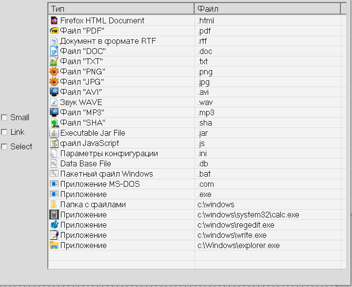 -внесены изменения в работу doGetFileIcon позволяющие получать иконку не только файла и папки, но и привязанного расширения (.bmp,.txt). Так же с иконкой можно получить описание типа файла (свойство TypeNameIcon). Иконка можно получить залитой цветом как выделенная (свойство SelectIcon) и/или как ссылочную с стрелкой в нижнем левом углу (свойство LinkIcon).