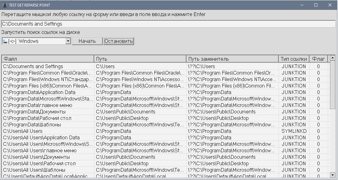 В простой тестовой схеме можно ввести в ручную или перетащить любую папку/файл символической ссылки из проводника или любого файлового менеджера для получения данных. Желательно хорошенько протестировать.