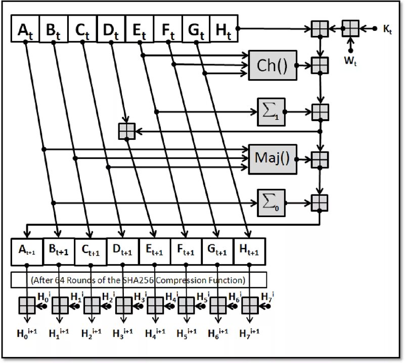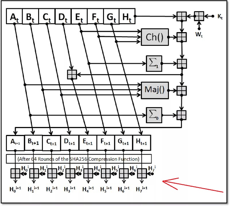 Я читал первую ссылку. Там объясняют математическим языком. Вопрос в последних 8 блоках. Я не могу понять что они делают. Там пишут что надо суммировать по модулю 2 раунды 63 и 64. Но я смотрел в поисковике, там пишут что раунды вообще не суммируются. ИИ тоже пишет что раунды в SHA-256 вообще не суммируются. В этом и весь вопрос.