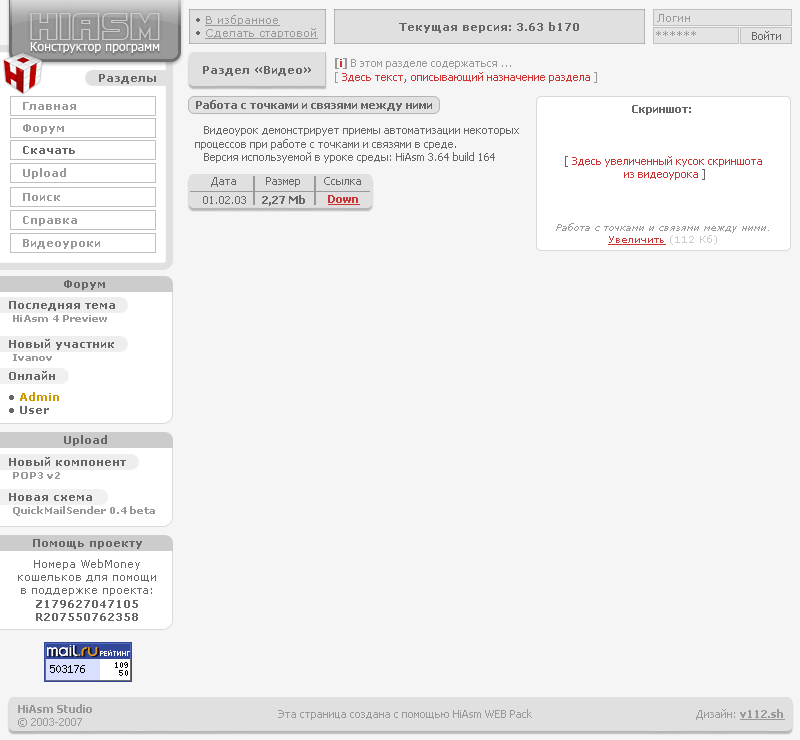 Dilma писал(а): Еще нужно количество скачиваний приделать куда-тоДобавь ещё один столбик в таблице. Выкладываю вариант страницы "Видео". Астрамак, плаХиатор! |