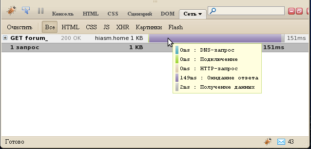 ждем-с твою картинку ------------ Дoбавленo в 21.10: на всякий случай последовательность действий, если скрин ни о чем не говорит: 1) заходим на форум 2) открываем в FireBug вкладку сеть 3) жмем Последние 4) наводим мышь на строку 5) снимаем скриншот результата |